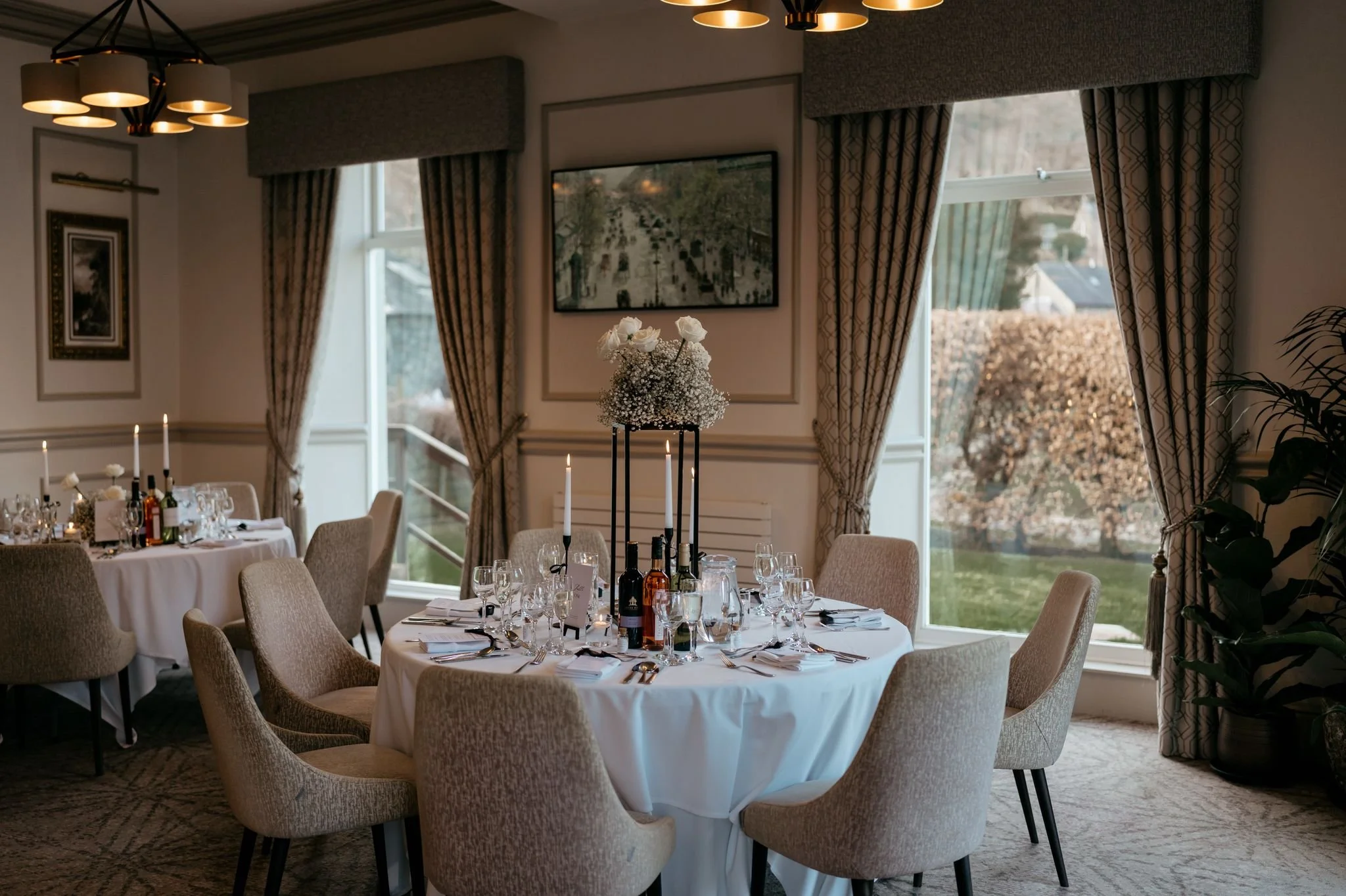 A beautiful central arrangement with flowers filling the table with scent, big enough to create impact without overcrowding.